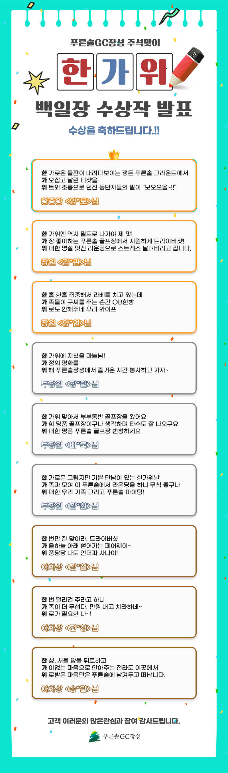 추석맞이 한가위 백일장 수상작발표
